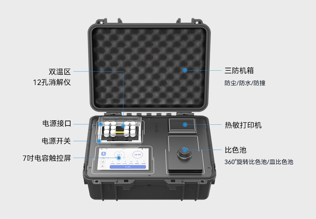 在本次技能競賽中使用的LH-C600便攜式多參數(shù)水質(zhì)測定儀,是連華科技首款從單片機(jī)升級(jí)為安卓系統(tǒng)的儀器,集LHOS操作系統(tǒng)、360°旋轉(zhuǎn)管比色、雙比色系統(tǒng)、雙溫區(qū)消解、個(gè)性化定制、數(shù)據(jù)智能分析等多種新技術(shù)功能于一身,實(shí)現(xiàn)了水質(zhì)檢測設(shè)備的多線程任務(wù)處理、多元化場景支持和流暢的用戶體驗(yàn),使水質(zhì)檢測工作變得更加智能、精準(zhǔn)和高效。儀器支持COD、氨氮、總磷、總氮、懸浮物、色度、濁度、重金屬、有機(jī)污染物和無機(jī)污染物等38項(xiàng)水質(zhì)指標(biāo)檢測,兼顧便利性的同時(shí)又不失實(shí)驗(yàn)室型儀器的精確度。